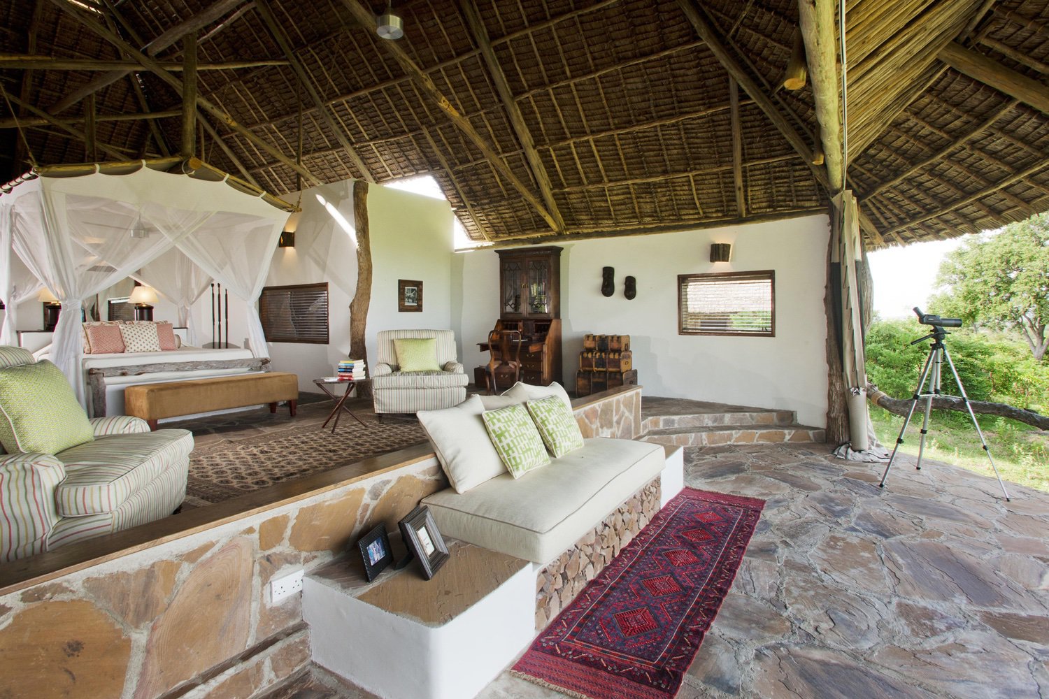 The camp at Beho Beho consists of nine spacious, palm-leaf thatched bandas built from local stone. Each main suite is open at the front with a canvas curtain that can be drawn at night. Inside, you'll find comfortable chairs, a huge mosquito-netted bed, a Zanzibari daybed, a writing bureau, Persian carpets and a tripod-mounted telescope for spotting game. The banda also features a separate dressing room, bathroom, an open-air shower and a private plunge pool! In addition, there is Bailey's Banda, a private villa with its own pool, which has two double rooms, sleeping 4. It is also worth noting that Beho Beho can and often is booked exclusively.