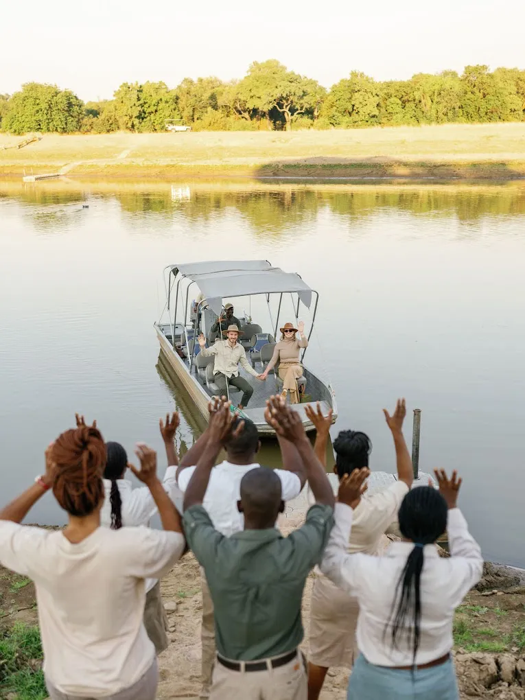 Chinzombo is an intimate, high-end safari lodge nestled on a sweeping bend of the Luangwa River in the heart of the old safari country of the South Luangwa, Zambia. With just six luxurious villas tucked beneath ancient msikizi trees and direct frontage onto a wildlife-rich ribbon of river, the lodge delivers a rare blend of remote wilderness, refined comfort and dramatic scenery.