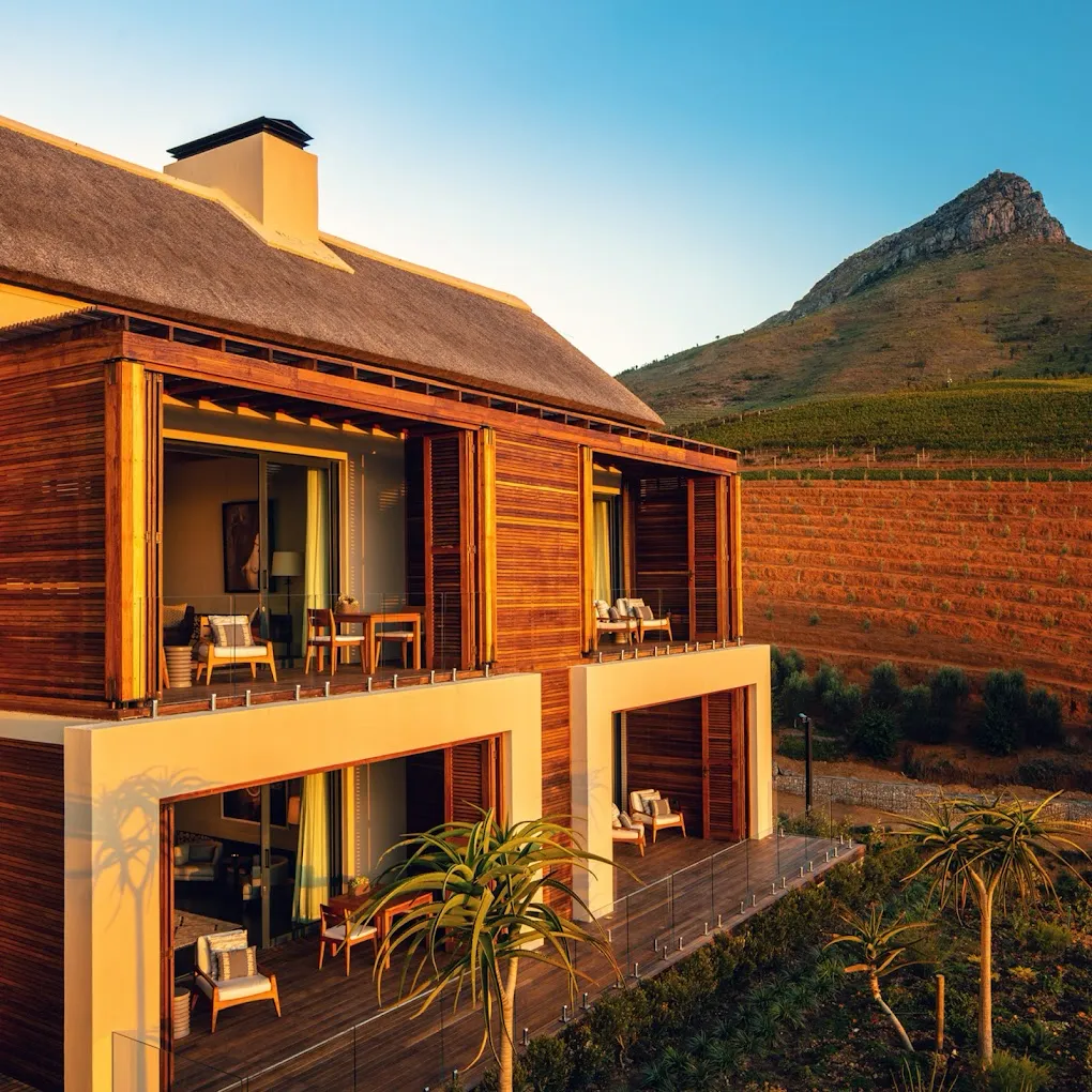 Delaire Graff is a spectacular vineyard retreat perched high on the Helshoogte Pass between Stellenbosch and Franschhoek. Known for its sweeping mountain views, world-class dining and impressive art collection, it offers one of the most luxurious and visually striking stays in the Cape Winelands.