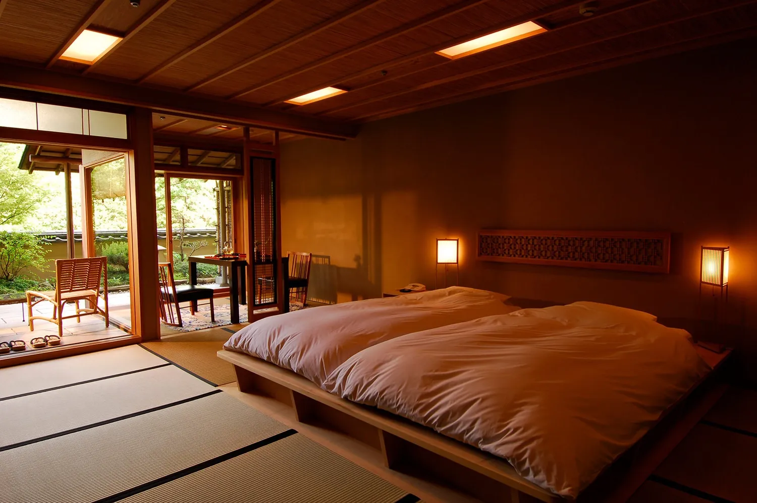 Gora Kadan offers 39 elegantly appointed rooms and suites, each designed to provide a tranquil retreat. Accommodations feature tatami mat flooring, futon bedding, and private gardens, creating an authentic Japanese atmosphere. Many rooms are equipped with open-air stone baths or wooden tubs, allowing guests to enjoy the therapeutic hot spring waters in privacy. Modern amenities, including 4K smart TVs, Bluetooth speakers, and free Wi-Fi, are thoughtfully integrated to ensure comfort without compromising traditional aesthetics.