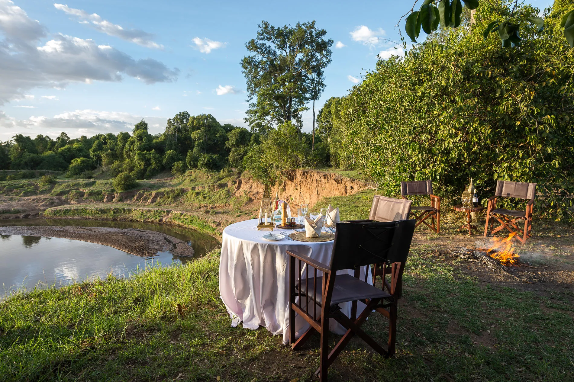 Dining at Governors’ Camp is relaxed and communal, enhancing the sense of shared safari adventure. Meals are served in the open-sided dining tent or outdoors beneath the trees, with menus offering hearty, well-prepared dishes inspired by both international and local flavours. Bush breakfasts, picnics, and sundowner drinks in the savannah add memorable moments to the daily rhythm of the camp.