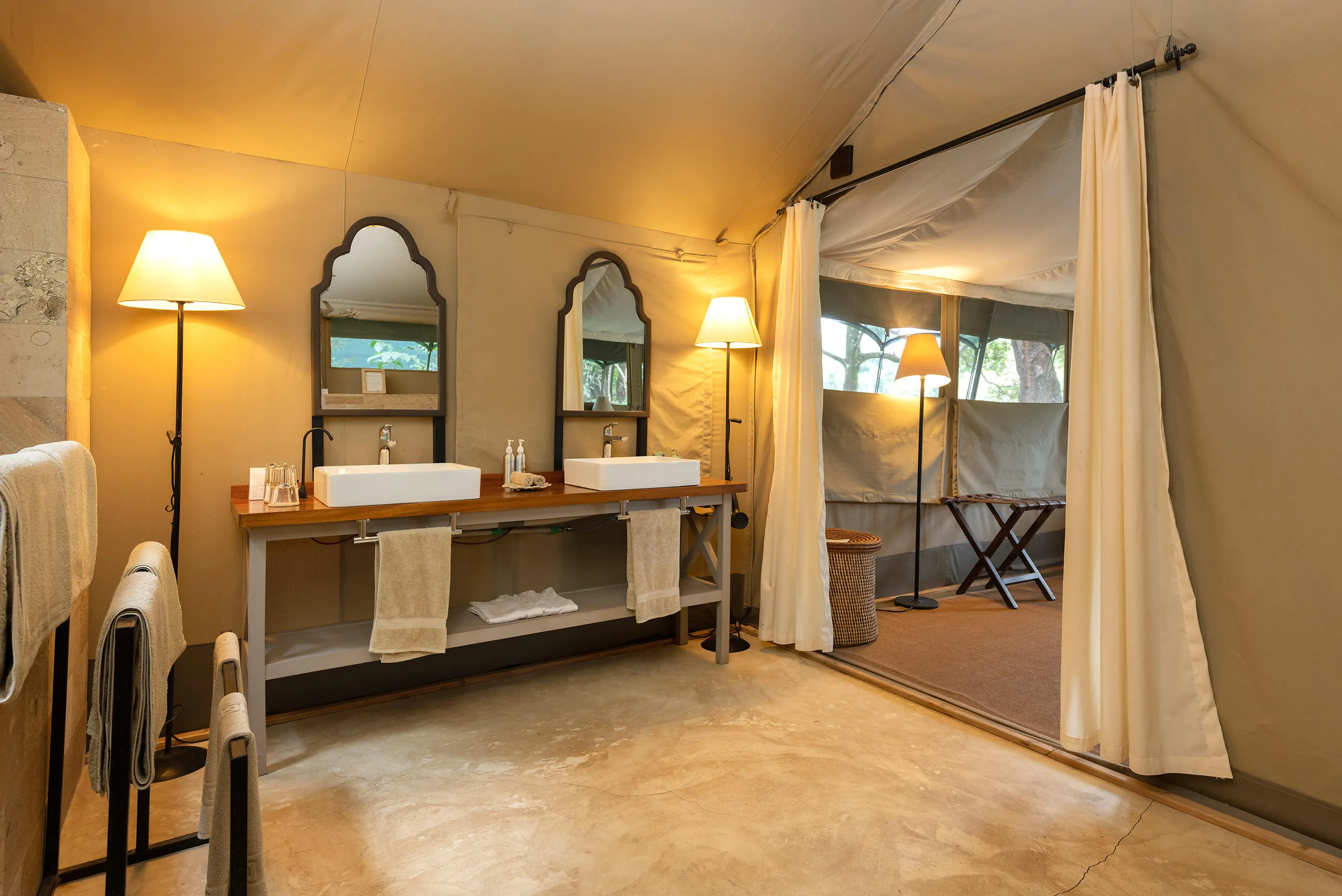 Accommodation at Governors’ Camp consists of classic luxury tents that blend comfort with authenticity. Each tent features en-suite bathrooms, generous living space, and private verandas overlooking the Mara River, where hippos, elephants, and other wildlife are often seen. Interiors are elegant yet understated, allowing the focus to remain firmly on the surrounding wilderness and the timeless safari atmosphere.