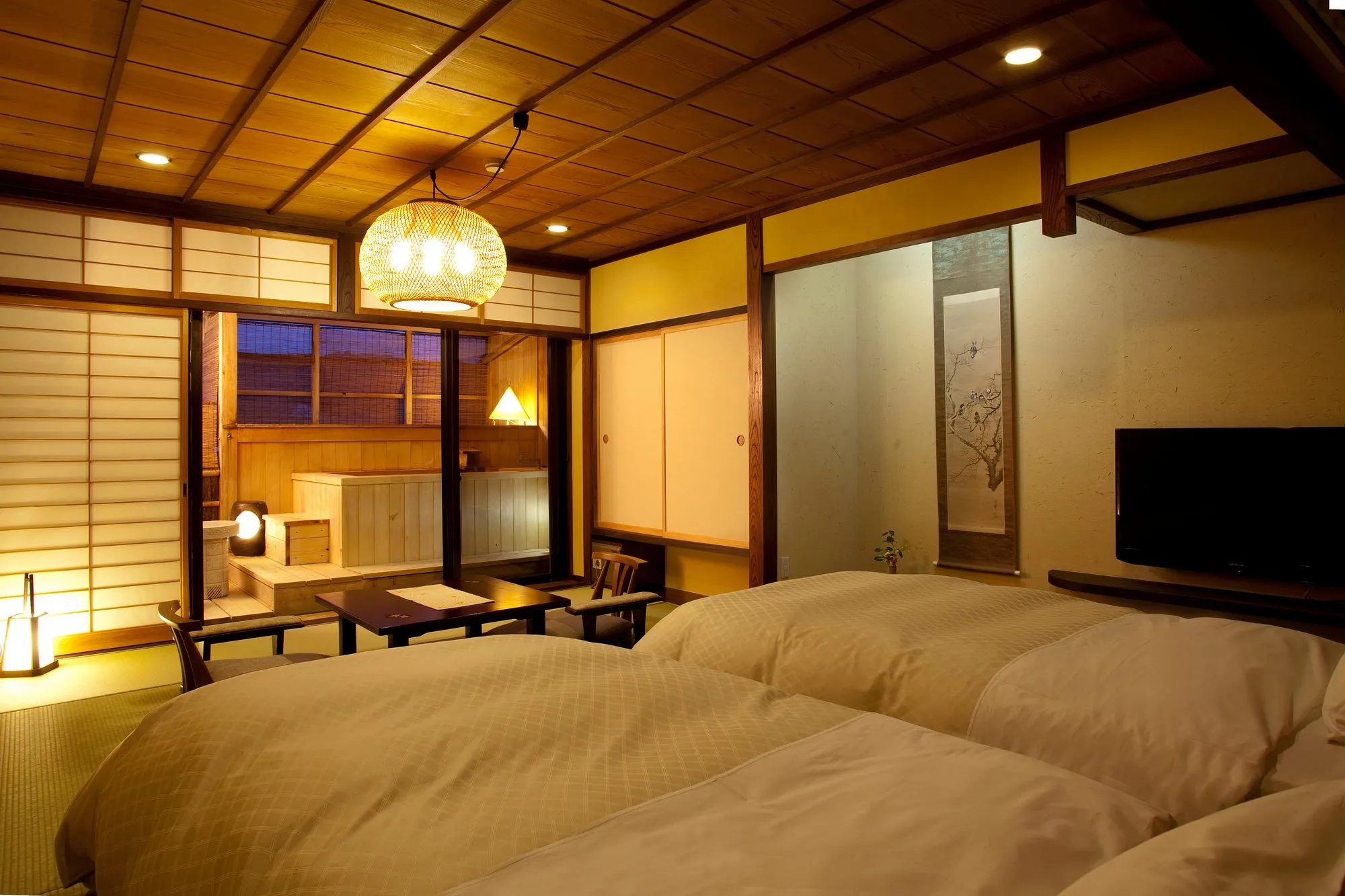 Accommodations at Hidatei Hanaougi blend authenticity with modern comfort. Guests can choose tatami-matted rooms with futons or Western-style rooms with beds, many featuring private open-air hot spring baths overlooking the gardens or surrounding woods. Thoughtful amenities such as air-conditioning, Wi-Fi, and quality bath facilities are seamlessly integrated, while select rooms offer exclusive stone or cedar baths for ultimate relaxation.