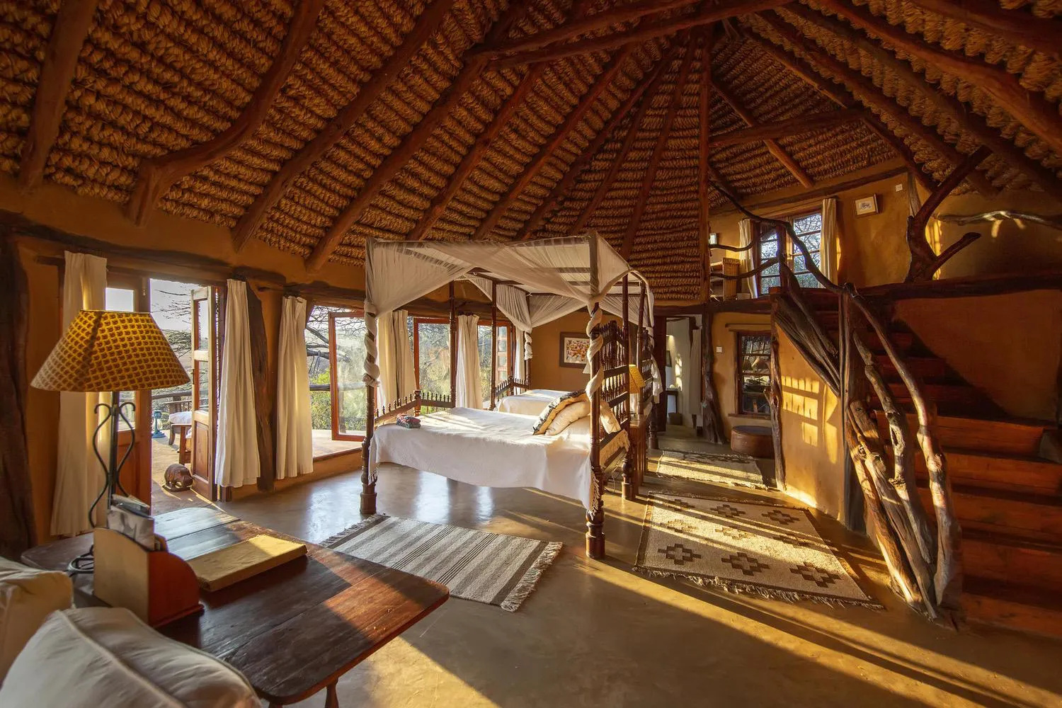The lodge offers nine unique cottages, including stone-built garden cottages and hillside cottages with sweeping views of the valley below. Each room is individually decorated with handcrafted furniture, warm textiles, and cosy fireplaces. The cottages are spacious, private, and beautifully integrated into the surrounding landscape, offering comfort without distraction from the natural beauty outside.