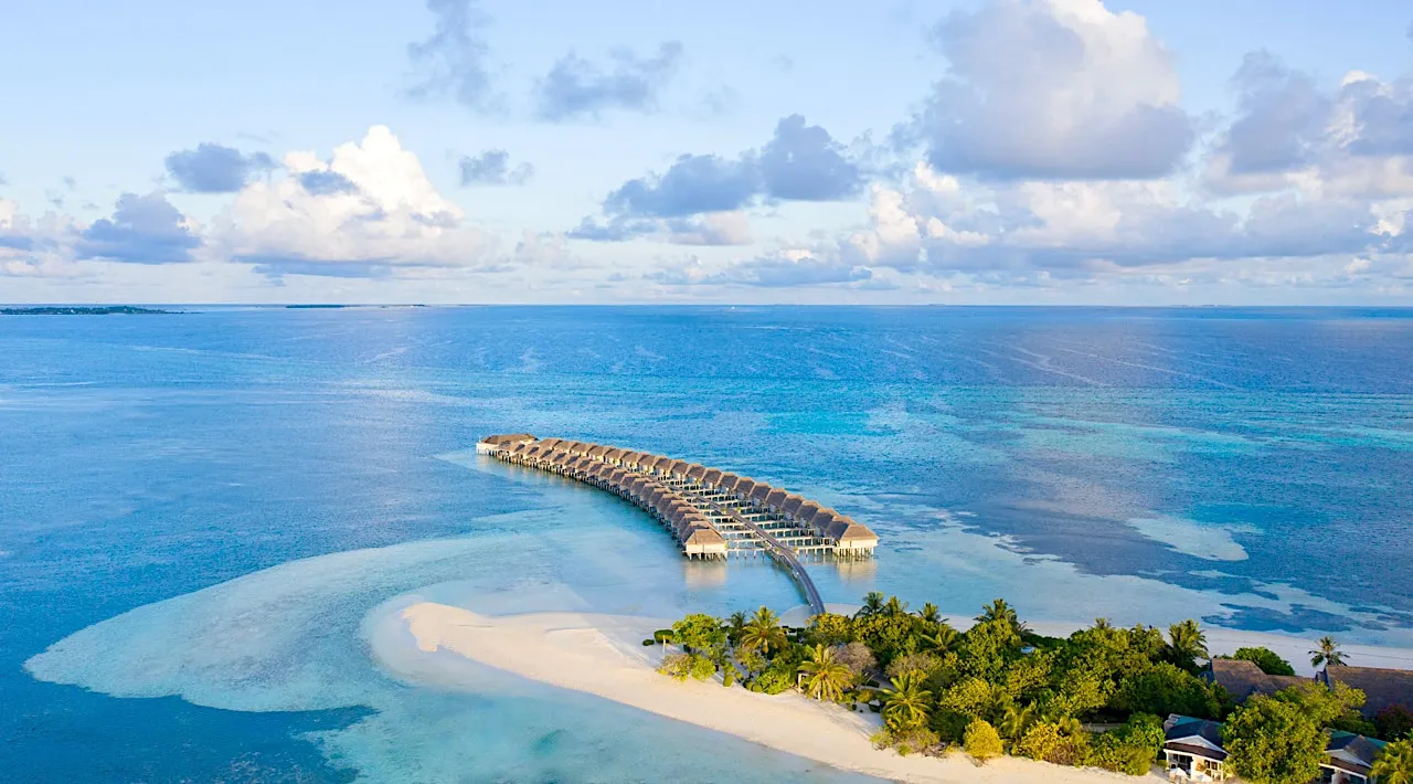 Spread across two miles of powder-fine beach and a lush tropical island, LUX* South Ari Atoll blends modern architecture and playful design with Maldivian natural beauty. The resort is deeply committed to sustainability—boasting one of the world’s largest floating solar platforms, plastic-free operations and marine-conservation initiatives such as coral adoption programmes. With 193 villas and pavilions and luxury service throughout, the atmosphere is space-rich yet accessible, set within a backdrop of year-round marine wonders like whale sharks.