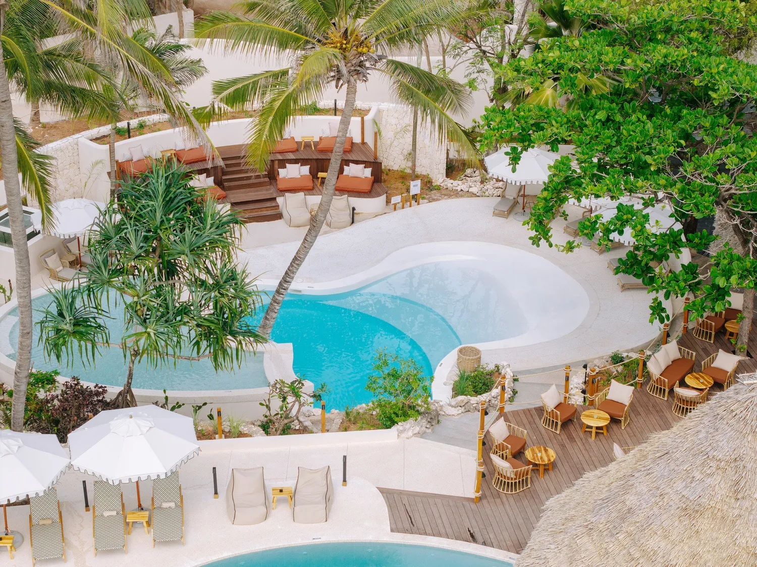 Accommodation consists of 74 spacious villas, some with direct sea views and private terraces or balconies that invite indoor–outdoor living. Interiors are airy and elegant, featuring natural materials, soft neutral tones, handcrafted furnishings and generous bathrooms. Some suites include plunge pools or elevated decks overlooking the lagoon, adding a touch of luxury while maintaining the resort’s relaxed, organic feel.